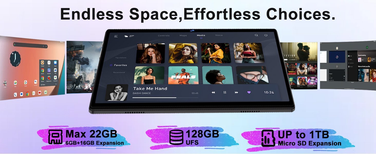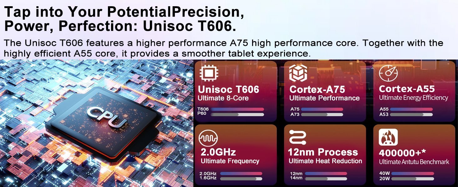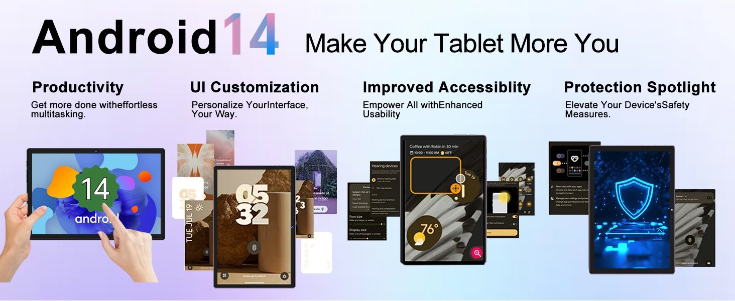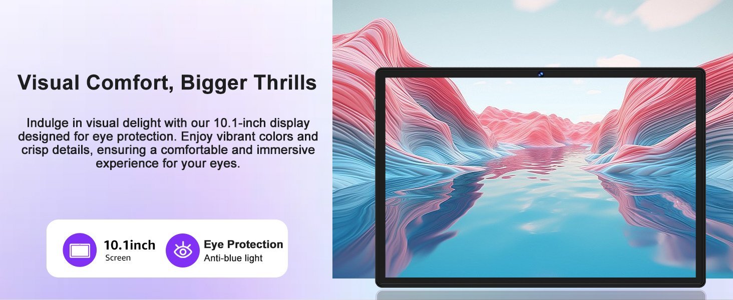 • Nueva configuración: Esta tableta de 10,1 pulgadas ejecuta el último Android 14 con un procesador octa-core de 2,0 GHz, que potencia la multitarea y la velocidad general para un rendimiento más fluido.